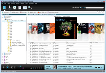 - Helium Music Manager quản lí bộ sưu tập âm nhạc: Phần mềm Helium tự động sưu tầm tất cả các dữ liệu có sẵn từ những bản nhạc. Dữ liệu có thể tự động được tải về từ các nguồn trực tuyến, như CDDB/ Gracenote, FreeDB, Allmusic.com, Discogs.com và google Image Search... Những công cụ biên tập trong Helium Music Manager cho phép bạn nhanh chóng điều chỉnh và hoàn thiện dữ liệu cho những bản nhạc của bạn. Với những đặc điểm nổi bật như: lựa chọn ca sĩ, album và cập nhật dữ liệu bằng cách thức thông dụng, đọc dữ liệu từ những tên tệp hay tải dữ liệu từ các nguồn trực tuyến, đổi tên tệp tự động và tạo lập cấu trúc căn bản trên dữ liệu có sẵn, thiết lập và hiển thị những thông báo, bổ sung, đưa lên và tải về những anbum ảnh, những đĩa CD. Ngoài ra phần mềm này còn giúp bạn thiết lập và quản lí những playlist lớn nhỏ, phân tích đặc tính của những file nén và chỉnh sủa những file có rắc rối...